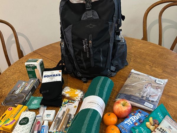 Backpacks include items to help with immediate relief from hunger, plus items to protect against bad weather, like warm beanie, socks, blanket and a rain poncho.